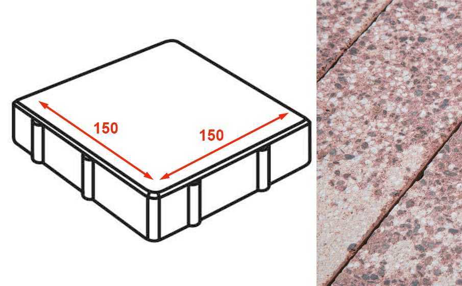 Плита тротуарная Готика Granite FINERRO, квадрат, Сансет 150x150x80 мм